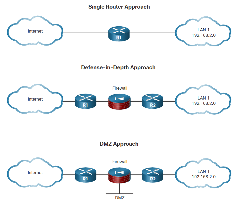 Normally, you have 3 approaches to network security talking about routers.