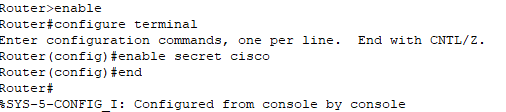As you can see here above, after entering the password you have acccess to cisco router ios and privilege mode.