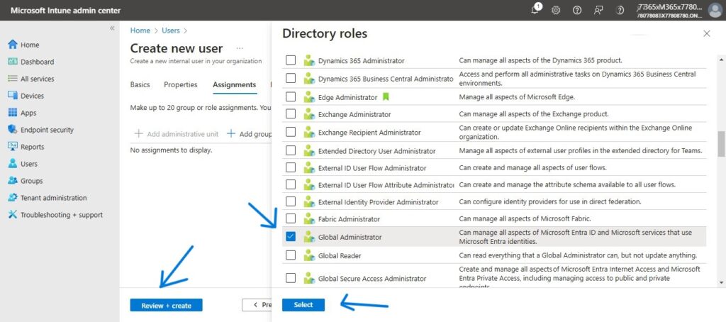 Here for sample purposes, I am selecting “Global Administrator role”