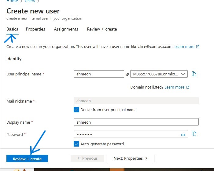 Basics Section of User Creation in Intune